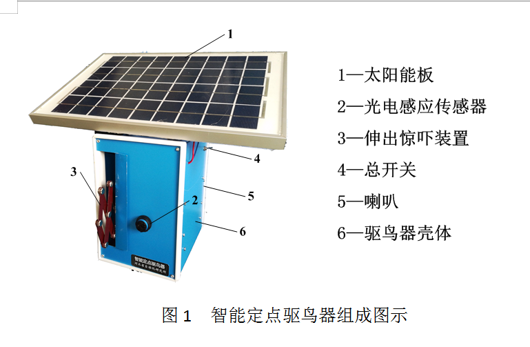 6、安裝完畢后使用時(shí),向下扳動(dòng)圖1中的總開關(guān),打開驅(qū)鳥器,可以用手遮擋一次圖1中的光電感應(yīng)傳感器,測試驅(qū)鳥器功能是否正常。