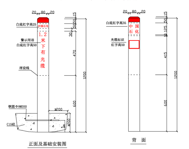 ⑴ 加密樁/通信標(biāo)識(shí)均標(biāo)注中國石化名稱、管道名稱、警示用語、管理單位和聯(lián)系電話。